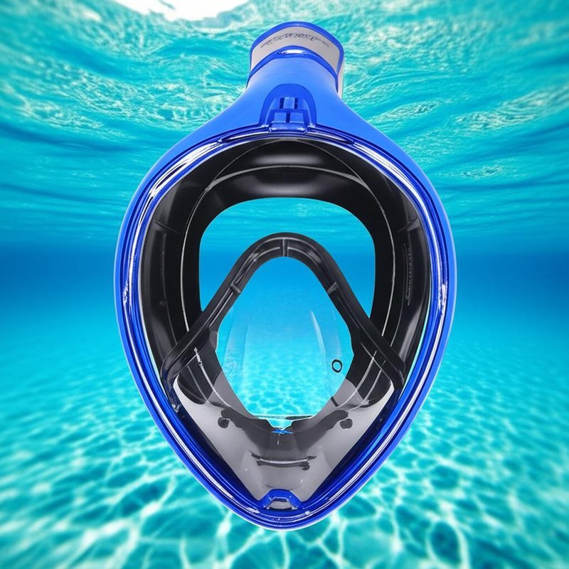 Masker ini dilengkapi teknologi antikabut dan saluran pernapasan terpisah untuk pernapasan bawah air yang nyaman dan aman. Snorkel bagian atas kering secara otomatis tertutup saat terendam untuk mencegah masuknya air.